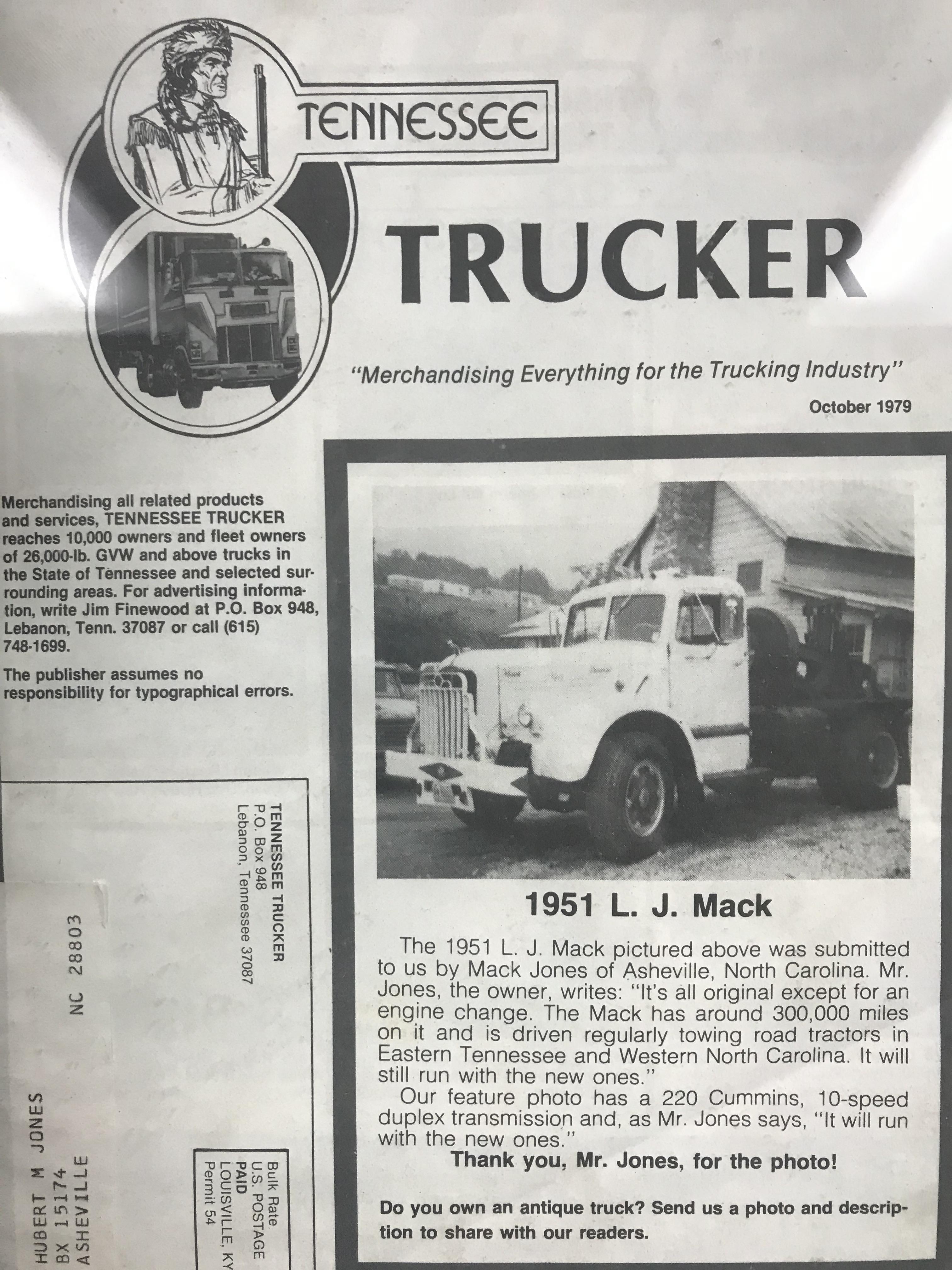 Unbelievable the work that can do compared to what we used in the 70s , I’ve been to the Towing Museum in Chattanooga a couple times, it’s a good walk through the advancement of Wrecking. We used a couple 600 Holmes for years, running blocks around trees, anything that would hold but we worked a lot of big truck wrecks in these mountains. Here is a picture of a magazine ,1979. I sent in the picture of the LJ , Mr Jones is who I worked for when I got out of High School and started driving the LJ towing trucks, mostly for McLean Trucking. I later bought my B61 . -