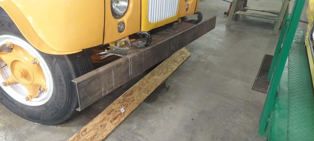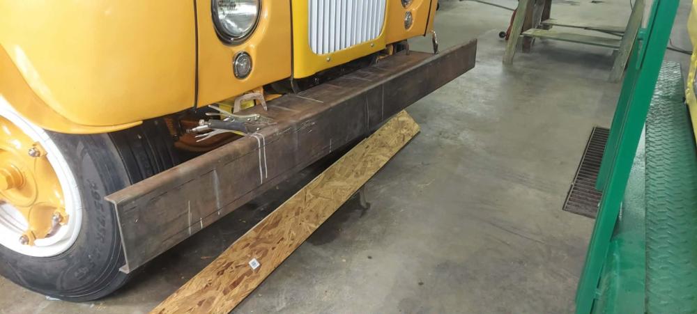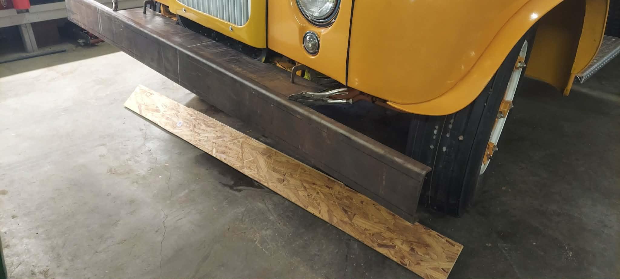 Good evening forum members. I have some updates on my restoration of the B-Model to share. First pic is a rig I made to press in the spring bushings. I made a plywood mockup (that's it laying on the floor) for the front bumper to get all of the dimensions before I ordered the steel and had it bent. I have been putting it together and came up with this. So far so good! Sure, saves money with the mockup before ordering the steel. Also makes it a fun projected! As always with respect.....Frank