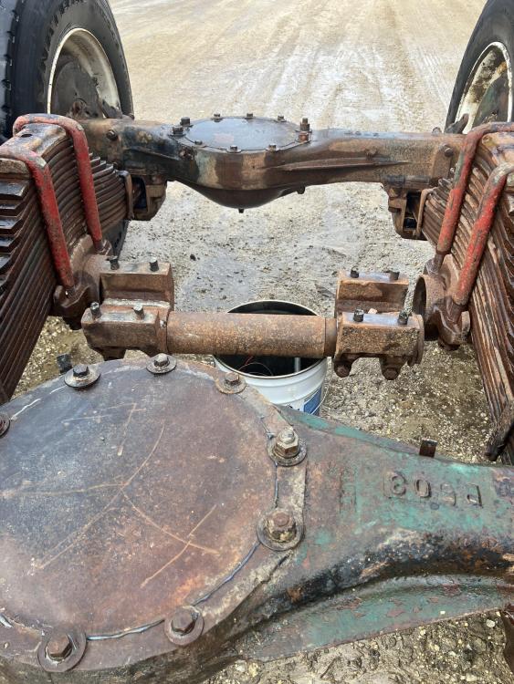 Here is another picture. It answers some of everyone’s questions. It may be a trailer suspension. If so, how to identify it? It has 4” wide springs and looks like Mack axles to me. It does have bronze bushings for the spindles.