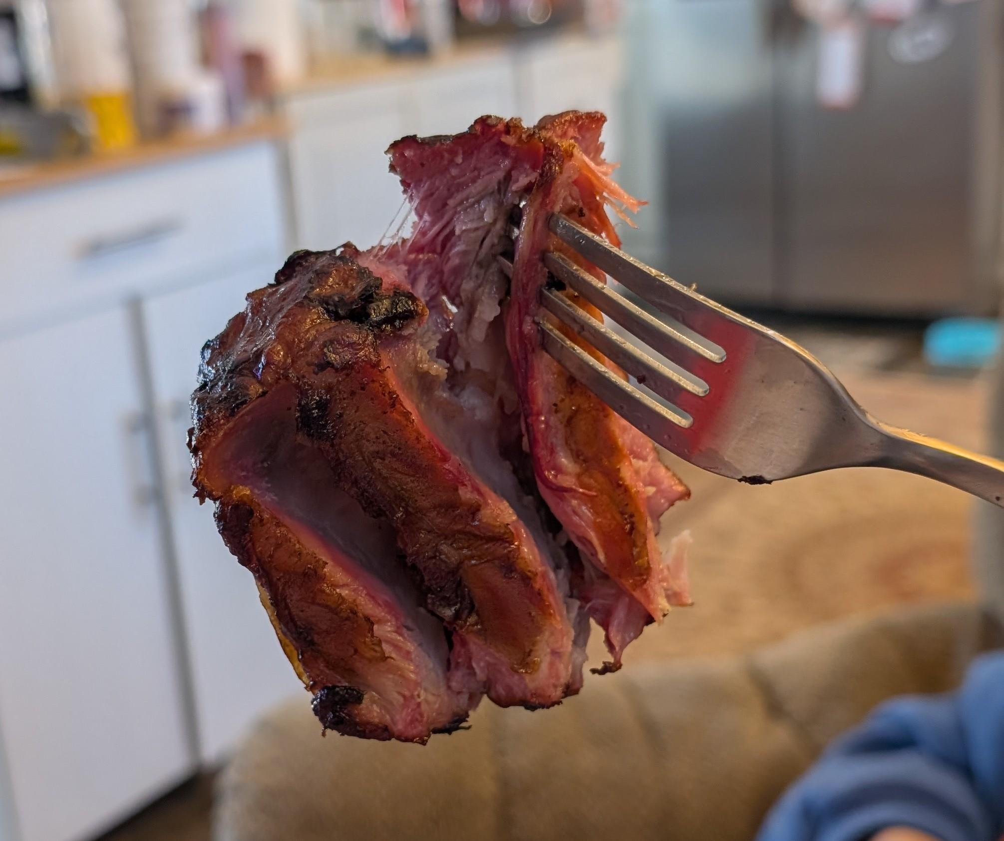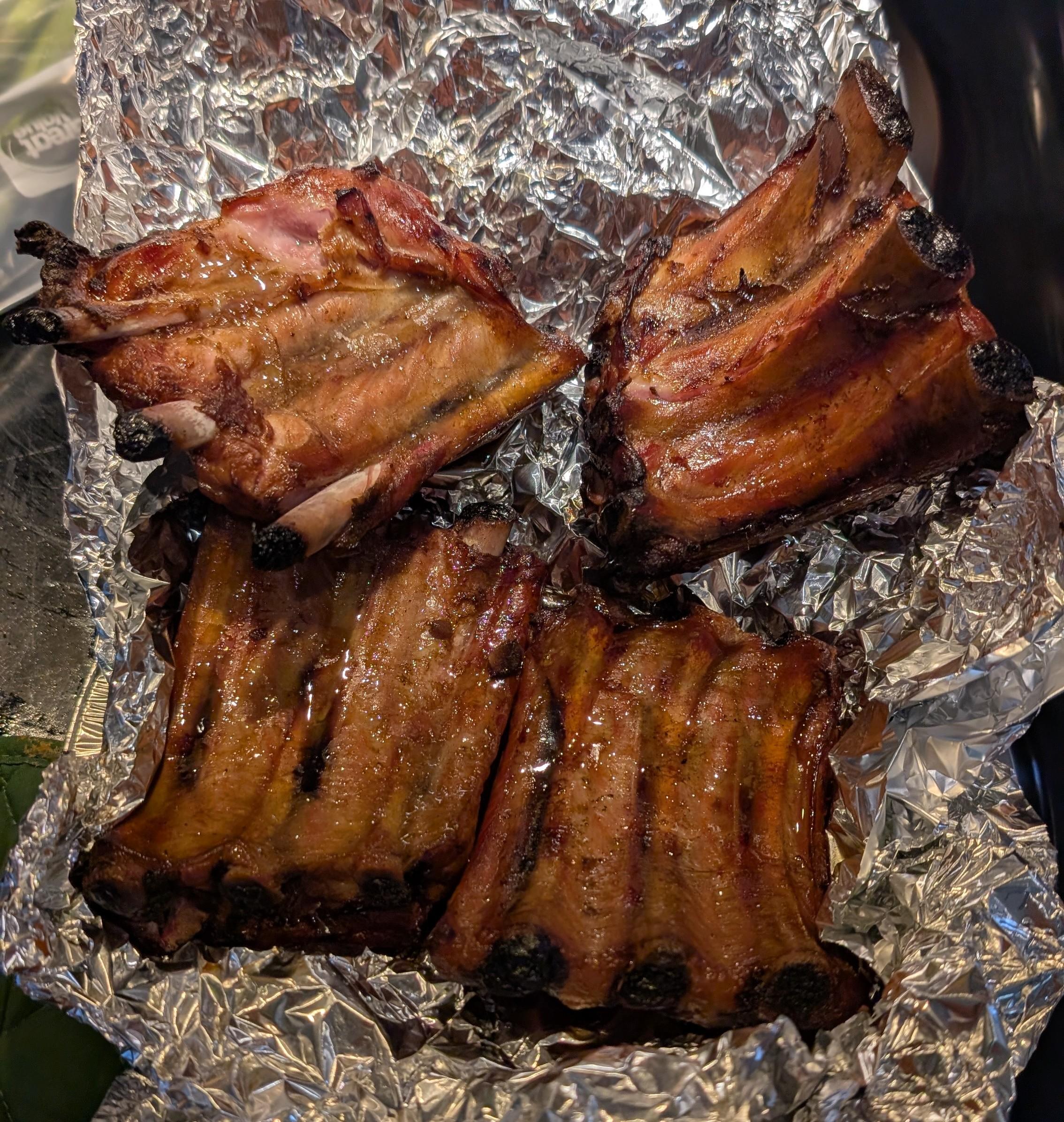 I think the ribs are done but I brought them in and put them in the oven anyway. I serve no swine before it's time. Zina tried some and said they were delicious. I'm still drinking a delicious cold Miller Lite and watching the exciting motion picture, called "Fall".