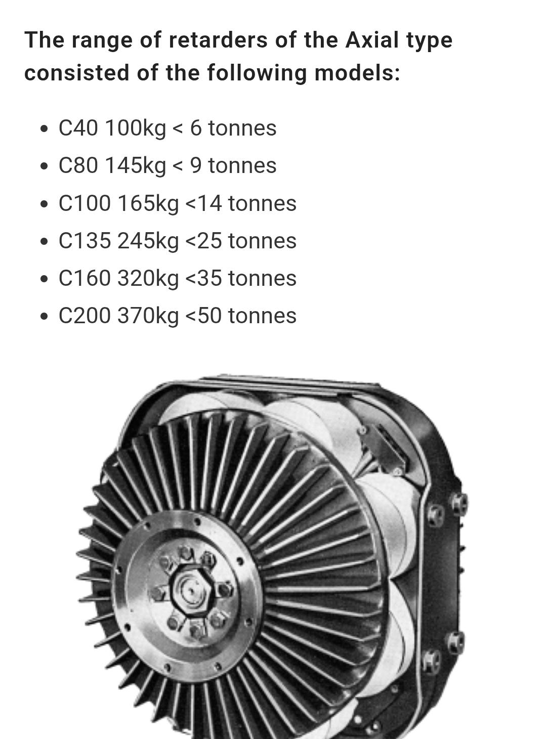 The ones (Telmas) I was around were on LP fueled M.A.N.'s so had a throttle and therefore would not work with a Jake. However if you could justify the weight there is no reason they couldn't be used with an engine Jake as well. Some of the heavy hauler had 3406's with both Jake and Brakesaver, as weight is never an issue when every load is a permit load. I don't know how much they weighed, but there was big rotor on the output (transmission) or input (rear axle) and a stator that surrounds the rotor with a series of electro-magnets in it. So lots of copper and iron. Brakesaver used engine oil to act on a turbine wheel between the engine and clutch. Retarding energy was turned into heat in the engine oil. Cats with Brakesavers have bigger oil coolers then those without. When Cat used an injection pump and nozzles in the head, there wasn't a handy injector rocker to time the Jake like there was with Cummins and 2 stroke Detroits for optimal valve opening. Cat Jake's of that period used an adjacent cyl exhaust rocker to trip the Jake, but its timing wasn't ideal so the retarding wasn't as good as it is with common rail engines. So that is why the Brakesaver hung around until the changes over to common rail fueling. At that point the timing came from the injector rocker, like Cummins. By the time we got the LP buses, mostly the Telam's didn't work, we had enough to do to keep the buses running and Telma's weren't needed in Chicago like they were in Austria where the buses came from. I think may be 1 out of 4 or so worked. Likely needed something simple, but there was never time. -