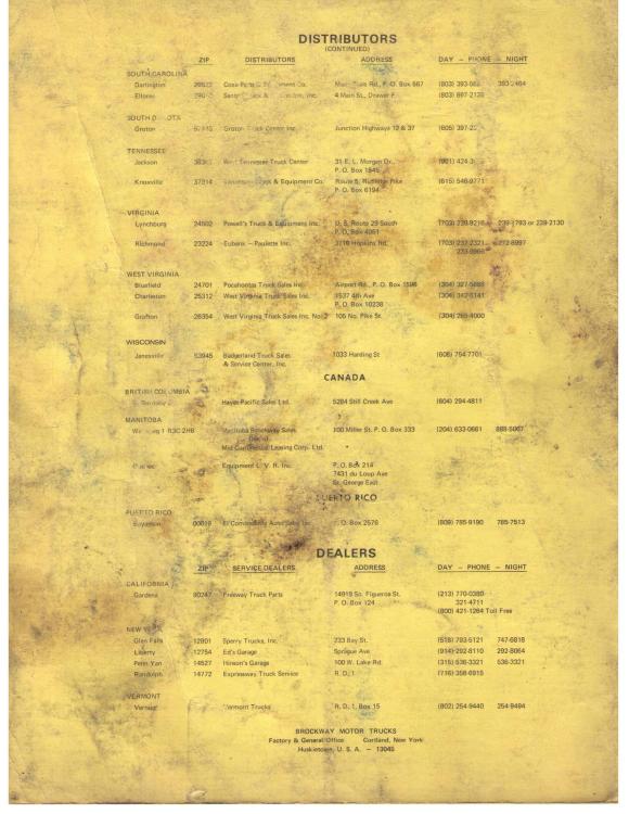 Here is a copy of the Brockway Directory Sales and Service Center locations. This one is from 1974 and I understand there were a few more dealers added before 1977.