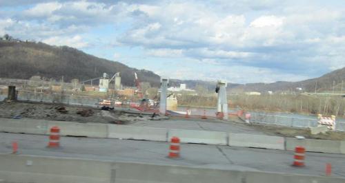 I saw some barbecued chicken last weekend. I saw a blue Mack on the scales in Petersburg too. and another Mack over there on the other scale. it was very hot in Petersburg- it was actually only in the 90's, but sitting in that loading area it was this hot! Motorcycle accident in West Virginia. The Wal Mart truck was involved, don't know if the bike came around the curve and ran into the back of it or just what happened. Saw the goats again. Over the mountain, rt. 48 west of Moorefield, W.V. You can see the smoke from the power plant in Mt. Storm in the distance. They should have the last stretch of 4 lane open soon, but now you still have to get off at rt. 93, take it down to rt.42, turn right, and start climbing that 4 mile 10% grade. steep ramp down to 93 too. the 4 lane will eventually cross 42 just to the right of the smoke from the power plant, at the notch in the hill. it'll probably take me 30 minutes or more to get there from where i'm at. Random road shot, heading east on I-80, just west of Clearfield, Pa. Chipping operation in N.C. Tunnel on I-77 at the Va./W.V. line. When I was coming back from Oakvale W.V. some girl tried to get me to stop. I thought she was going to step out in front of the truck. I never slowed down. Construction on I-81 between Christiansburg and Roanoke. When I got back to the shop I helped Jeffrey pick grapes off the pine tree. He's gonna make wine out of them. Then on the way home I saw this girl in Winfall. I think she might have been stuck, but i'm not sure. I never even slowed down.