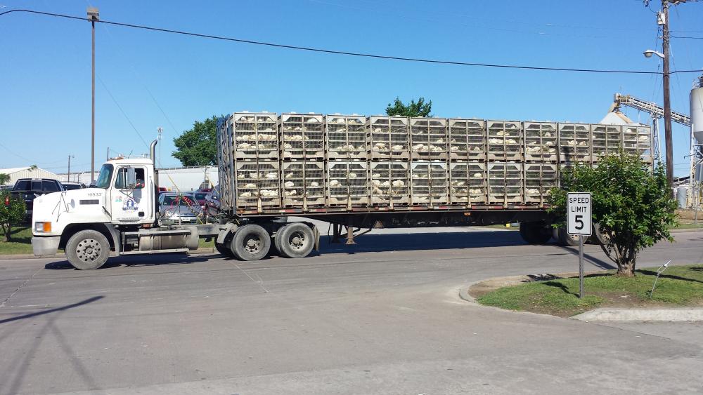 PPC Transportation (Pilgrims Pride Corp.) has a sizable fleet of Macks they use for live haul from the farms to their various processing plants across the South. This photo taken yesterday at Pilgrim's plant in Lufkin, TX. Trucks being unloaded all day long, seems like about one every 15 minutes.