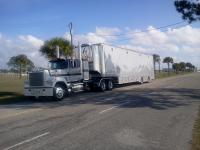7. Yes she will be my full time ride. Its currently in primer and hope to have it rolling in November. Its been stretched to 300" with 1999 running gear and mack air ride. She has a Big Cam 400 with a 15 over and a 4 over behind it. She will be white with black fenders and a painting on the back of the sleeper (which has been integrated to the cab)of a Dominatrix holding back two white tigers. The interior will be black leather and charcoal grey ceramic tile. Her job will be preloading tankers in New England when I'm not transporting a race car stacker. Can't wait to post some pictures!