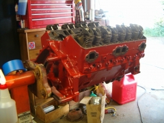 Here are the block and heads after 2 coats of engine primer and 3 coats of high-temp engine enamel. -
