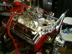 * New Headers from Summit (more pictures to follow). * New Taylor Spark Plug Wires and Champion Spark (shorty) Plugs. * New Alternator Bracket. * New Chrome Valve Covers & Oil Filler Cap/Breather. * Painted Intake Manifold with Chrome Engine Paint. -