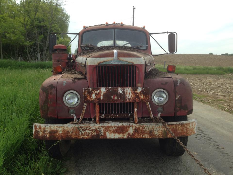 Hey guys, sorry about the delay in response to everyones inquiry of the story of getting the truck. Its been a long fall, harvest lasted forever and I'm just now getting back to getting some time to reply. Heres the story..... I work for a leading Seed corn and Soybean seed production Company. I work in production and thats a fancy term for working on the farm and planting and harvesting and everything in between. I started 3 years ago come this spring. While I was out spraying a field one day I was going around a woods on a neighboring farm that sits approx. 1/2 mile off a road. It was around June or July and the foliage was pretty thick, but In the midst of the green cover I seen a white stripe on what seemed to be some red metal of some sort. I never thought about it much and continued on my way. So, Come fall, I was back there again spreading some lime and again rounded the corner and began along the side of the woods. I then saw that what I saw before was an old truck of some sort. Again, I just thought...."Hmmm" and contiuned on my way. When I got back to work I asked my boss about the truck. He said that he was back there about 20yrs ago when he started working there and had taken the air horn off of it for one of the spreader trucks but he didnt know what it was for sure........ Last winter I decided to begin the process of gathering parts to build a Diesel Rat Rod. I had bought a '92 Dodge Ram dually with a Cummins. My plans were to remove the Ram body and put a 41-46 Chevy or GMC truck body on it. After looking online for a body and realizing that to find a good one I was gonna have quite a bit of money in it, I decided to scrap the idea and sell the truck and not do it. While I was looking at trucks online I came across a few B Model's and It got me wanting one in a bad, bad way since I have always wanted one. Well, last spring I was spraying burndown on weeds on that farm, again I seen the red mass of steel sitting in the woods. Still did not know what it was from all the brush, trees and vines hanging all over it. From the field It looked like it may be an old White or REO. I stopped the sprayer and marched in the woods. Im not a guy that just goes marching in someones woods to look at stuff and I was actually quite scared to, but I had to find out what this truck was. As soon as I rounded some trees and got on the east side of it where there were no vines or brush I noticed the shine of a Mack emblem on the hood and realized my dream of owning a B Model Mack just may be in sight. Sure enough, according to the serial number a 1962 B61 Mack with a 673 END and a Duplex trans!!. As soon as I gave it a quick look over I started getting brave and sticking my head in the doors and windows. After sitting for some time I was worried that some "thing" had probably made it thier home......and boy was I right. Careful as I was, I slowly lifted the drivers side hood skirt and a damn raccoon was looking right at me just as I opened it! I jumped back and actually threw my back out cause I had moved so fast before my arm could follow my body. Damn raccoons....... So, as soon as I got back to work I went to my boss and told him what I had found and insisted to him that we had to figure out who owned this truck. So, we have this nifty program that we can look on the computer and get tax identification information on any piece of property in that county and also shows the owner of the property. As soon as we found the owner we tried to look his name up but there was no phone number to be found. But as we searched, a few other names showed up that could possibly next of kin to the individual. I tried calling them and the phone number had been disconnected. So, as I hang with doubt about getting in touch with the rightful owner I did a search on the person who would have been possibly the man's daughter. No number was listed but it showed that she had a son, who showed to be 25yrs old. In this day of age, its pretty uncommon to find any 25yr old boy/girl who is not up on the social media. So, with me having an account on a popular social media site I began to search his name....and low and behold I found him. I sent him a message and told him who I was explaining that I was interested in the truck to restore and was wondering if there were any plans for it. With anticipation I was hoping for an answer and never got one that evening. Then I noticed something, he was a truck driver........"Oh No!" I thought. If he is a truck driver, theres no way in hell he will let this go if it truly is his family that owns it!.......Well, the next day I got my answer. He messaged me back and told me that the truck was his grandpa's (who owns the property and farm ground that the truck rests in) who was 92yrs old and suffering from severe Dementia. He said he didnt know much about it but the truck had been there all his life. He said that he was pretty certain that there was no title for the truck to be found as they had tried to find it prior to me asking about the truck. He also said the family had no plans for the truck and that they would entertain an offer to sell it.....YESSSS!! I thought. So, I told him to talk to his family and ask what they thought a fair price would be to sell the truck. He got back with me a couple days later and told me that they did not have a title so to them taking it to the scrap yard without cutting it into pieces wasnt even an option for them. He claimed (and I concur) that the truck weighed roughly 10,000-12,000lbs. And with scrap price right around $300/ton that would equate out to about $1500-1800. He said that since I was saving the truck from sure rapture and that they did not have a title that they asked if I would pay $800. I gladly obliged So, I had a buddy of mine bring his backhoe and drop deck trailer and we rolled it out of the woods. I had to cut one tree out that was growing between the frame rails and one tree right at the corner of the bumper. The two front tir