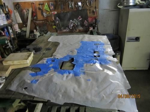 17. Today we installed the genuine Mack floor mat. After investing a fair amount of time thinking about how to do this without massacring the very expensive mat, I decided to make a template out of 6 mil plastic sheeting. After making a perfect copy of the Mack floor mat out of the plastic, I then cut out the areas that needed removing (for the shift levers, e-brake, PTO levers, brake and throttle pedals, etc.). After making sure enough plastic was cut out, I then used blue painter's tape to add material back in and leave the EXACT holes and openings desired. After putting it in and taking it back out a few times to make sure the template was precise, I then laid it on top of the genuine Mack floor mat and cut out the holes as they were set in the template. It came out pretty close to perfect.