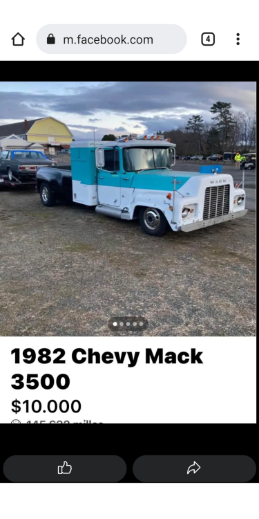 This poor thing looks like it had a rough end to its life. Not much for details on it. Mack 9 speed and neway. https://m.facebook.com/marketplace/item/6123411247747900/