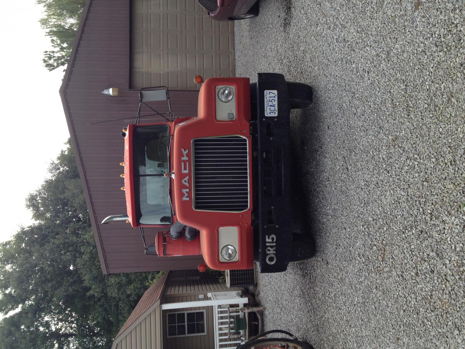 Thanks for straightening the pictures, not real good on computer. I was told the original owner pulled a lowboy with a small dozer locally and put about 61,000 miles on it. In 2000 he sold it to a friend that owned a concrete plant, he was having problems with his new Autocar so he bought it as a backup truck, he sent it to the Mack certified garage here in Madisonville and told them go through it and make sure it needs nothing, they put an exhaust blower on it to blow material into the silos, that's why it has more hours than miles. I bought it in Sept. 2014 with a little over 96,000 miles, it was sitting in a corner of a building and looked like it had not been moved in a couple years, I spent a week or so fixing leaks, a brake chamber, a brake valve, tail lights, where somebody knocked them off , dry rotten lines, seals, new shocks, etc. bigger wheels and tires to get 68 mph, the inside was trashed, extra wires going nowhere, 3 C.B.s partially hooked up none of them working. The truck has 126,758 miles and 4570 hours. I do not know if it needed everything done by the second owner, the Mack garage said basically they were given a blank check and told to go through it, I have those receipts and can tell it was done. The Mack mechanic is the one who told me about the truck when I was looking for one. I pulled a 39 foot frameless dump hauling limestone to TVA for 3 months, I have a new 5 in. chrome stack and NOS stainless steel mirror arms that go with it. if interested please call for more details, it is easier to talk than type with one finger.
