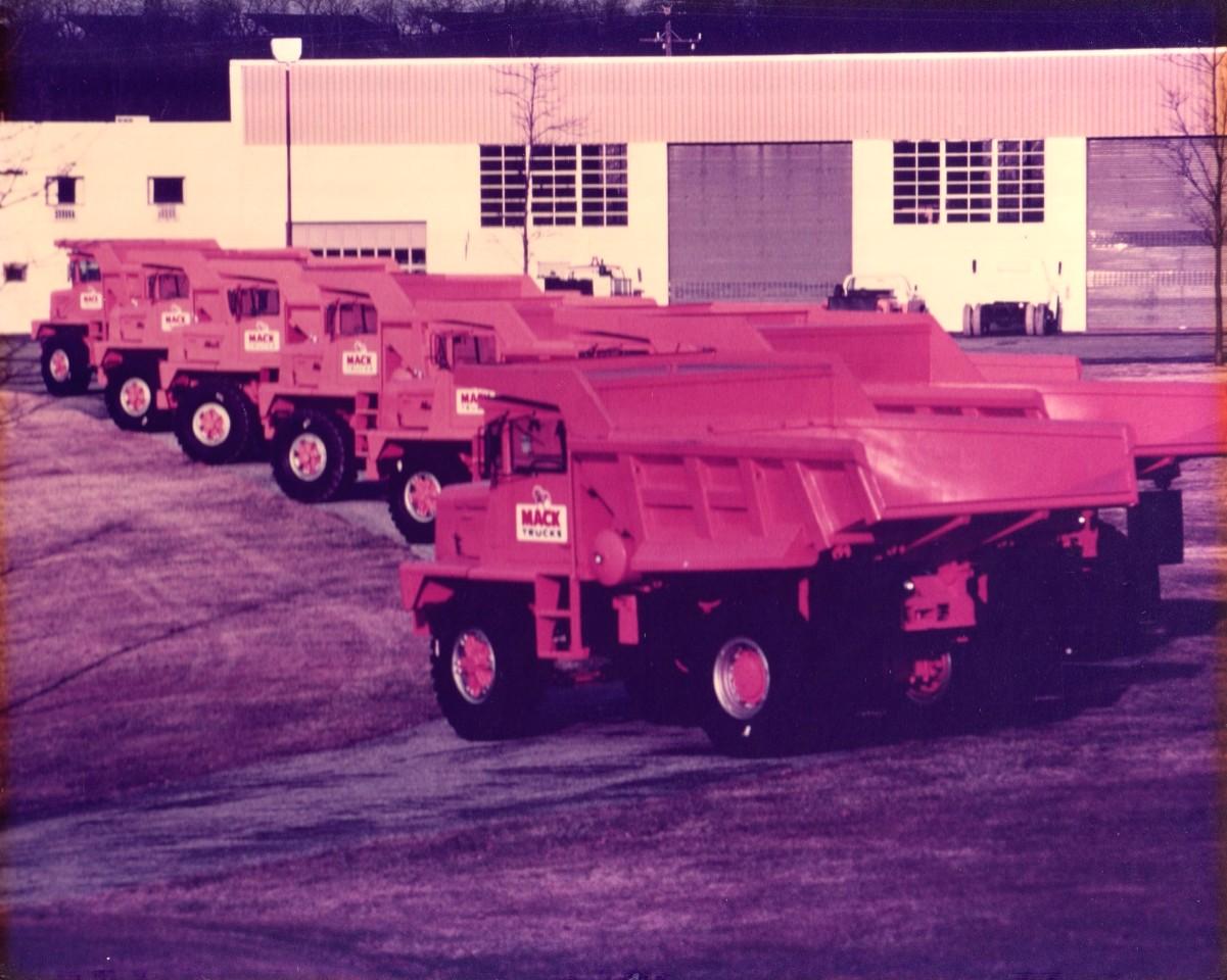 Rudy, M-series were built in Allentown, Macungie and Oakville, Ont. I hauled some of these, despite their balky size, they were easy to load and haul. I don't have any pictures of one on a trailer, but we either hauled them on an I-beam, or backed them on a deck, and stadled the deck with the front tires to get the height down. Pictures taken at Gerharts, sometime mid / late 1070's -