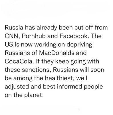 "The only thing worse than a poorly planned intentional war is an unplanned unintentional war." Above is a direct quote from Joe Biden. It was no secret to anyone with half a brain what the intent was when Putin amassed his Army on the Ukraine border. You be the judge. The wheels were already in motion. Intentional or unintentional? Biden, his family, oligarchs and politicians have been involved in the corruption in the Ukraine for years. Biden is into it up to his chin and trying to keep himself from drowning. I am not listening or being lead along by the main stream lies told by the politicians or mass media propaganda. I'm not laughing because this is a joke. The only ones being punished and suffering are the subservient in the way who are being killed and wounded. What every grandstanding is done it will not stop the planned and intentional.