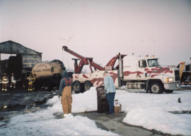 It is a fine line between BRAVE and STUPID.... Fire was mostly out, worse part was wading in the 5 or so inches of water that was on the floor of the barn, That's why I always carry my fire boots, which kept my feed dry, but I had to strip down to a tee shirt when I bent under the truck to hook so I wouldn't get my other shirts, & jacket wet. Easier to dry off my arms then it is 3 layers of clothes.