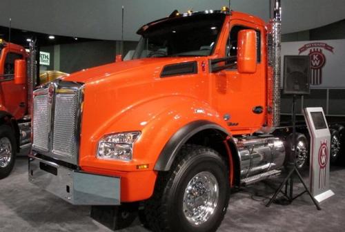 Fleet Owner / March 20, 2013 LOUISVILLE, KY. Kenworth Truck Co. unveiled two new truck models at the 2013 Mid America Trucking Show this week – the T880 vocational truck and a 52-in. mid-roof sleeper configuration for its T680 tractor. Kevin Baney, Kenworth’s chief engineer, said key attributes of the T880 include: a stamped aluminum cab with more interior space; a panoramic windshield for enhanced visibility; triple-sealed doors; a 5-piece hood for easier and faster repairs; air-assisted hydraulic clutch; complex reflector headlamps; and new lightweight, factory-installed lift axles. The T880 is available in a 116.5-inch BBC and a 122.5-inch BBC standard length with two hood configurations: one designed specifically to better accommodate the company’s 12.9-liter Paccar MX-13 engine while the other larger hood covers the Cummins ISX15 engine option, which offers up to 600 hp and 2,050 lb-ft of torque. Baney noted that Paccar updated the MX-13 for the 2013 model year, reducing its weight by 100 lbs. and improving fuel economy by some 3.5% over the previous version. It also offers onboard diagnostics and more engine ratings; up to 500 hp and 1,850 lb.-ft. of torque. The 52-in. mid-roof sleeper configuration now being rolled out for Kenworth’s T680 tractor is designed to accommodate the need of tanker and flatbed fleets. However, the OEM offers an aerodynamic roof cap as well for its mid-roof sleeper for dray van trailer operations; a configuration that offers more upper bunk storage space as well, Baney noted. Kenworth is also assessing aerodynamic cab roof and side fairing modifications for its K270 and K370 medium-duty cabover trucks designed by its brother company Leyland in the U.K. Those fairings, combined with an aerodynamically tapered truck body, helped improve fuel economy by 8% for the vehicle at highway speeds in U.K. road tests, according to the manufacturer. Finally, the OEM showed off a special demonstration vehicle dubbed the T680 “Advantage” to demonstrate the possibilities for fuel economy savings if fleets engage in comprehensive spec’ing efforts integrating the powertrain, tractor, and trailer as a single unit. Fitted out with a battery-powered Bergstrom engine-off air conditioning system, aerodynamic enhancements to reduce drag, wheel hub covers, and other improvements, the T680 “Advantage” is designed to show fleets how Kenworth can help them optimize the entire tractor-trailer to maximize fuel economy for their particular operation, Baney told Fleet Owner. “We’re trying to show fleets how to develop tractor-trailers as a complete package, one that maximizes operational savings for them,” he said.