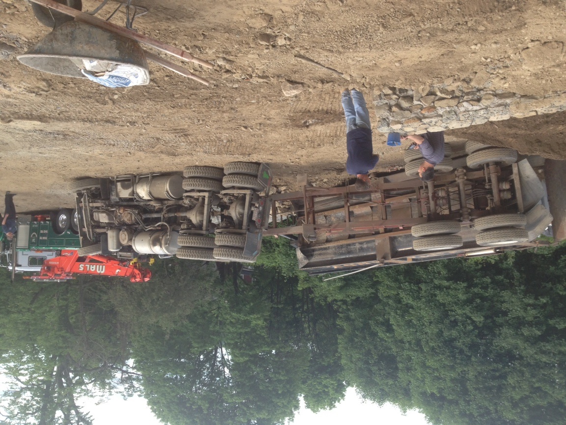 7. I hold it sideways, usually they are good. They are right side up in my album, just on here they are not. I tried, sorry they really are interesting. I never seen a truck go over it was like a light switch went on. Not a drop of fuel or oil leaked. Cab is junk frame is twisted nose is junk. I guess the tail gate was sticking, the nose was stuffed it really didn't look like he was going to go. It's a shame I think it's a 2011 or 12.