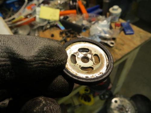 Thanks to wise guidance I received from youse (central pa for "you all"), I ordered the rebuild kit for my AD-4... After removal I gave it a bath (I HATE ENVIRONMENTALLY FRIENDLY CLEANERS!!! GIVE ME SOME PETROLEUM BASED SOLVENT!) Anyway, I digress... Once I got it apart it was not hard to figure out the issue...the check valve had its check missing! It was an orifice! The bracket was cracked at both mounts so I fixed that up...also used large doublers to prevent reoccurance! Everything back together and it works like a champ! My compressor actually shuts off until cut in pressure! The dryer was like this when I got the truck...it is a wonder I didnt wear the compressor out! Lesson here...if your compressor cycles constantly, and you replace the governer to no avail, it is most likely the check valve in the dryer draining the wet tank!!!