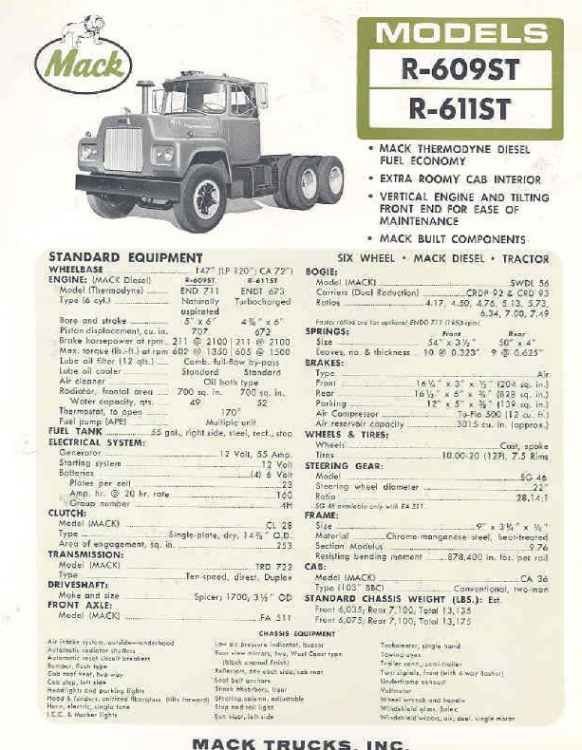same company that bought  the R611T with RR  also has the first R607T 1001 today. the 611 long gone but ole Number one R still there. R611 was replaced by Mack twin-screw ; don't remember transmission .wasn't 5speed possibly 12 speed. that was replaced by superliner. i see off topic happening ;; sorry.